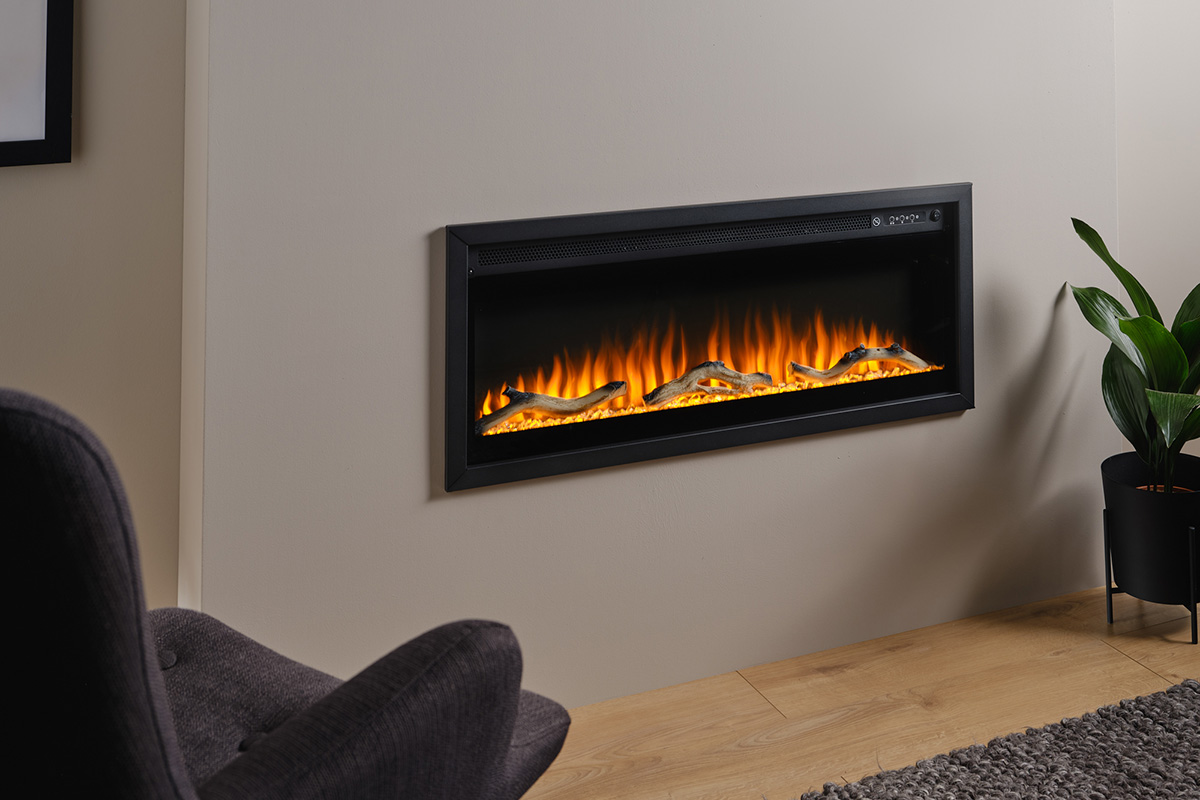 Il caminetto elettrico vetrato ADARA offre un elegante design di media larghezza sviluppato per essere inserito anche nei progetti più compatti e con installazione frontale.