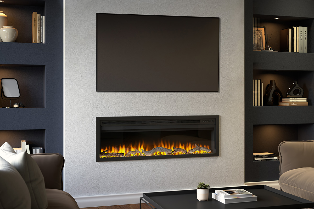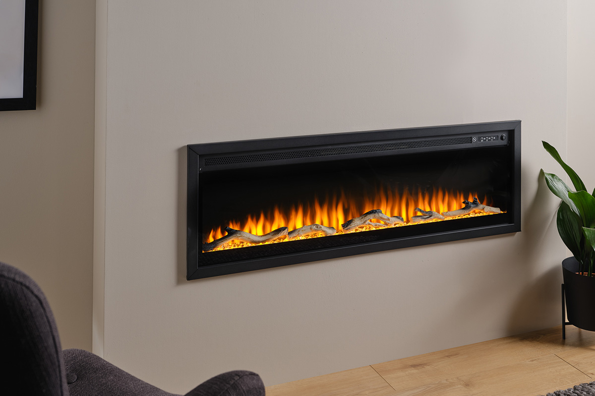 Il caminetto elettrico vetrato ADARA offre un elegante design di media larghezza sviluppato per essere inserito anche nei progetti più compatti e con installazione frontale.