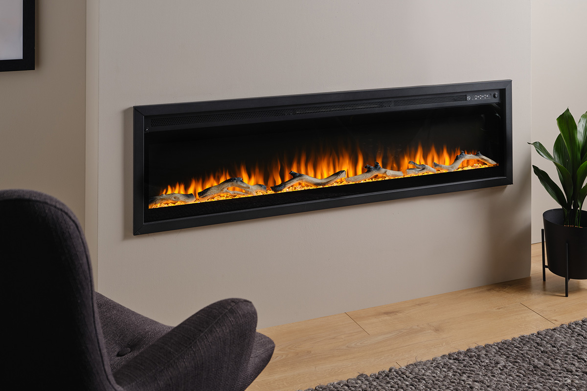 Il caminetto elettrico vetrato ADARA offre un elegante design di media larghezza sviluppato per essere inserito anche nei progetti più compatti e con installazione frontale.